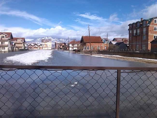 Покрај регионалниот пат Охрид – Струга формирани се езера, а улиците на Мислешево се под вода.