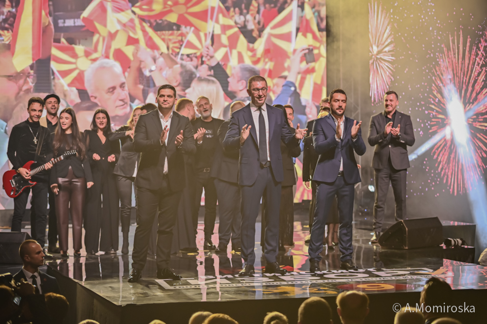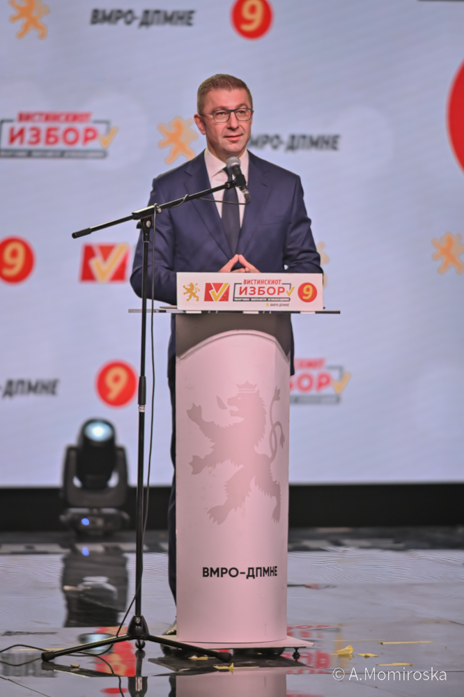 Тоа се луѓето што ја градат оваа држава. Тоа е Македонија што не се гледа на билборди, туку се чувствува во секое маало, во секој град, во секое рамо што подава поддршка и во секоја рака што создава. И затоа ова не е крај на кампања. Ова е потврда на нашата определба, да ја чуваме оваа земја, да ја исправиме, да ѝ вратиме достоинството што премногу долго ѝ го одземаа. Затоа што Македонија не може повеќе да си дозволи празни зборови. И токму затоа, од овде, од Охрид, од градот каде што се сретнуваат културата и духовноста, ја испраќаме пораката која ќе одекне низ сите краишта од нашата татковина дека овој пат изборот не е тежок, затоа што вистината е јасна, затоа што разликата се гледа и се чувствува. Изборот е помеѓу искрен труд и празна приказна, помеѓу сигурен пат и непознат хаос, помеѓу држава што гради и политика што руши. И затоа, вечерва, јасно и гласно велиме Македонија го прави вистинскиот избор. Ова не е победа на еден човек, ниту на една партија. Ова е победа на сите што веруваат во работа, во вредности, во чесност и во држава што стои на свои нозе, нагласи Мицкоски.