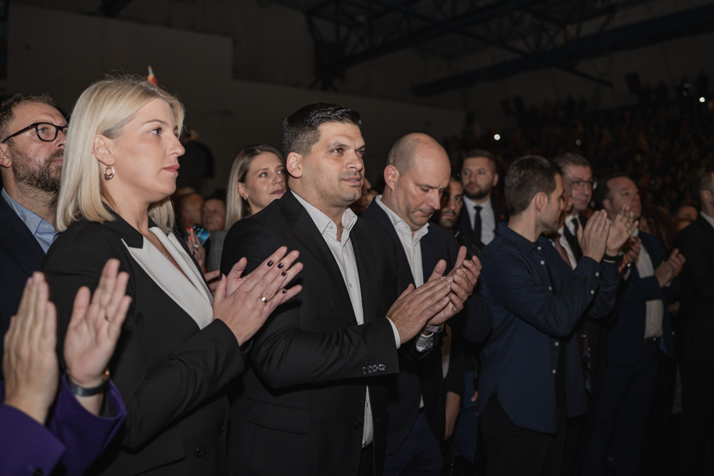 И кога велиме „вистинскиот избор“, не велиме лозинка, туку вистината на секој граѓанин што не се предаде. На секој човек што работи, создава, помага и верува дека оваа земја може и мора подобро. Од Охрид до Штип и Делчево, од Битола до Скопје, се слуша истиот глас, гласот на народот што сака ред, сигурност и иднина. Сака правда. Сака чесност. Гласот на луѓето што не чекаат некој да им ја донесе среќата, туку сами ја создаваат. И токму затоа, вечерва, од овде праќам порака што никој повеќе нема да може да ја замолчи, дека оваа земја избира сигурен пат, избира работа, избира стабилност, избира надеж, рече Мицкоски.