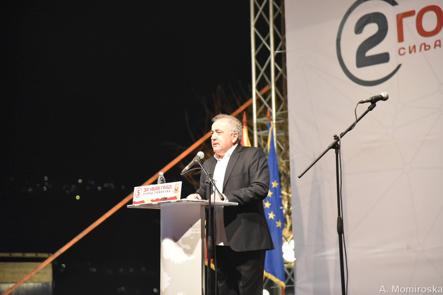 Време е за правда. Време е да се избориме за подобар Охрид. Митре Милошевски својот живот го посвети да им помага на пациентите, а сега е подготвен да помага и да го крене од пепел Охрид. Градот заслужува повеќе од тоа што денес го има. Нашата цел е голема, а таа цел е заедничка со Митре. Затоа ве повикувам да ја поддржите неговата кандидатура и да го дадете својот глас на 21 април за идниот градоначалник на Охрид д-р Митре Милошевски и идниот претседател на Македонија Гордана Силјановска. – порача Мицкоски.
