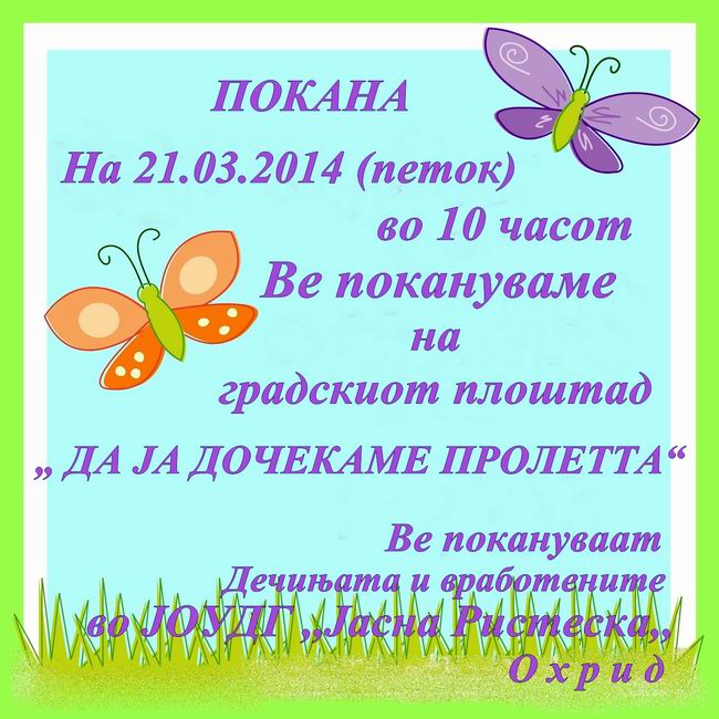 Денеска на градскиот плоштад во Охрид, дечињата од ЈОУДГ „Јасна Ристеска“ ќе учестуваат на манифестацијата „Да ја дочекаме пролетта“.