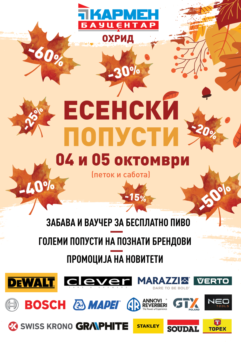 На 4 и 5 октомври сите патишта водат во Кармен Бауцентар – Охрид. За посетители следат есенски попусти, презентации, подароци и многу забава.