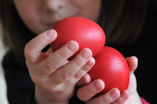Традиционално на полноќ по објавувањето на радосната вест за Воскресението Христово, верниците го практикуваат обичајот на кршење со црвени јајца, со што се означува крајот на велигденскиот пост. Црвените јајца го симболизираат животот, но и крвта христова, која е пролеана на крстот за спасение на човештвото. На првиот ден од Велигден се посетуваат храмовите, а верниците се поздравуваат со велигденскиот поздрав Христос Воскресе! – Навистина Воскресе! На овој ден се собираат семејствата на велигденска трпеза, а најмногу на кршењето јајца се радуваат најмладите.