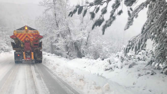 Сообраќајот на државните патишта се одвива по влажни коловози, наместа со остатоци од снег на коловозот по интервенција на екипите на ЈП Македонија Пат.