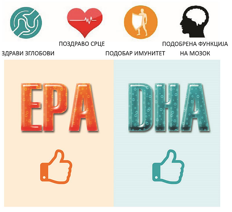 Станува збор за полинезаситените масни киселини EPA/DHA. Нивните полни имиња се навистина комплицирани, па доволно е да се запомнат под овие скратеници и да ги препознаете на продуктите кои во иднина ќе ги употребувате. Овие масни киселини се есенцијални, што значи дека нашето тело не може само да ги произведе и затоа мора да ги внесуваме преку исхраната.