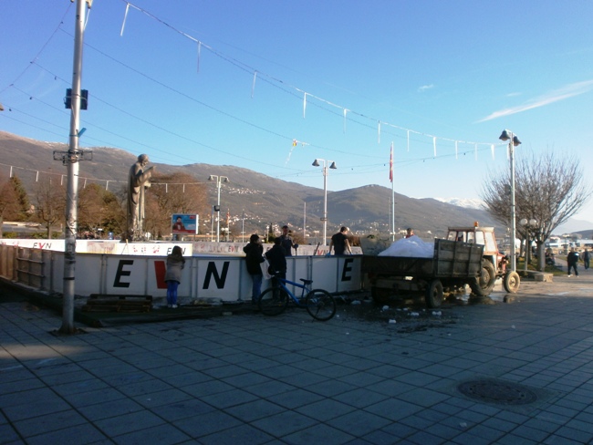 Започнаа активностите за демонтирање на лизгалиштето на градскиот плоштад кое беше поставено во декември. Во тек е чистењето на мразот, по што ќе следи и демонтирањето .