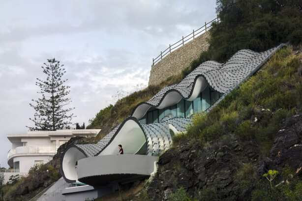 „Куќата а стрмнина“ на брегот на шпанска Гранада, му оддава почит на архитектот Антонио Гауди. Предизвикувачкиот агол на наклон (приближно 42 степени), се чини инспириративно, но не и ограничувачки, ја отсликува креативноста на архитектите од фирмата „Гилбартоломеј“. Куќата е закопана во ридот, па кога се гледа од горе, заоблениот брановиден облик личат на змејска кожа или морски бранови. Зданието има два ката – едниот е за дневен престој, а на другиот се спалните.