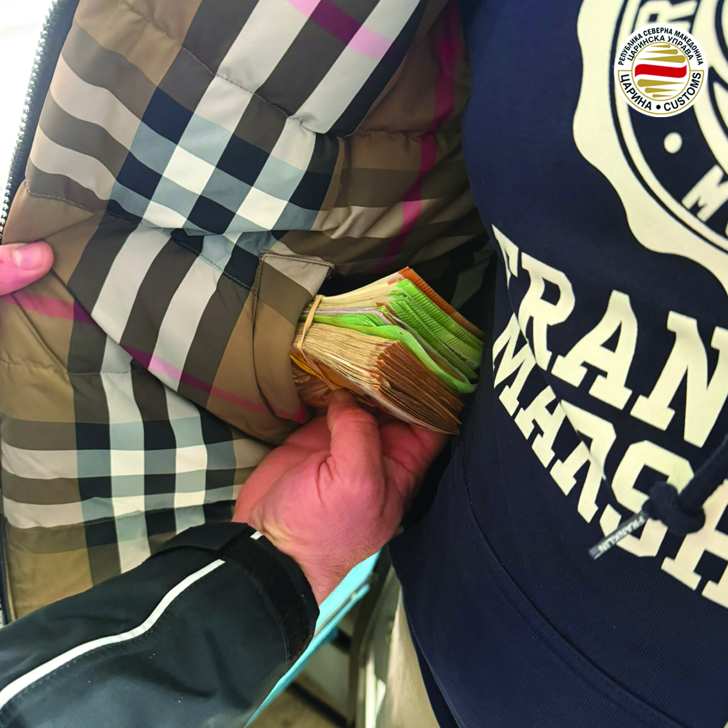 На излез од држвава на граничниот премин Богородица кај четворица патници се пронајдени вкупно 20.000 евра. Односно, секој од нив со себе носел по 5.000 евра, сума која е потребно да се пријави и за која е потребна потврда од овластена банка или менувачница при изнес од државава. Според Законот за девизно работење на секој од патниците им се вратени по 2.000 евра, а остатокот од по 3.000 евра или вкупно 12.000 евра се привремено задржани.