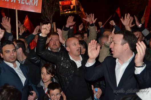 Пред насобраните сипматизери на плоштадот „Св. Климент Охридски“ се обрати неофицијалниот победник за градоначалник на Охрид, д-р Никола Бакрачески, кој се заблагодари на поддршката од граѓаните, партијата и централната власт, посочувајќи дека со денешната победа тој го исполнил првото ветување дека нема да загуби на локалните избори.