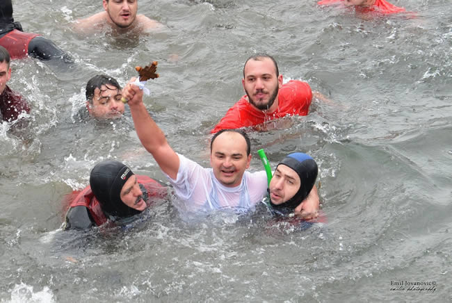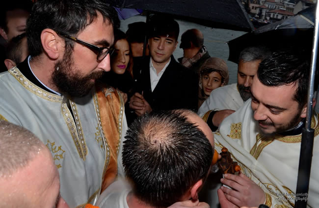 -Пред се Бог се јави и среќен празник на сите верници. Почестен сум што сум кум на Водици во Охрид и што можам да придонесам за оваа манифестација. Ова момче веќе 20 години е во „трка“ по крстот и еве годинава му се посреќи.-реќе кумот Жељко Јоксимовиќ, кој е воодушевен од гостопримството на охриѓани.
