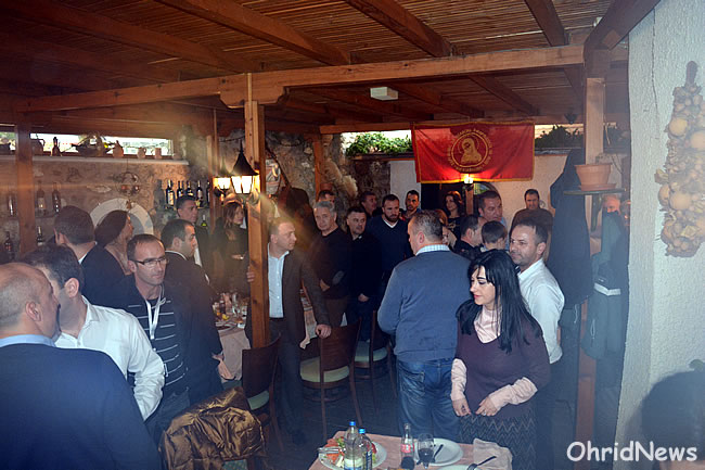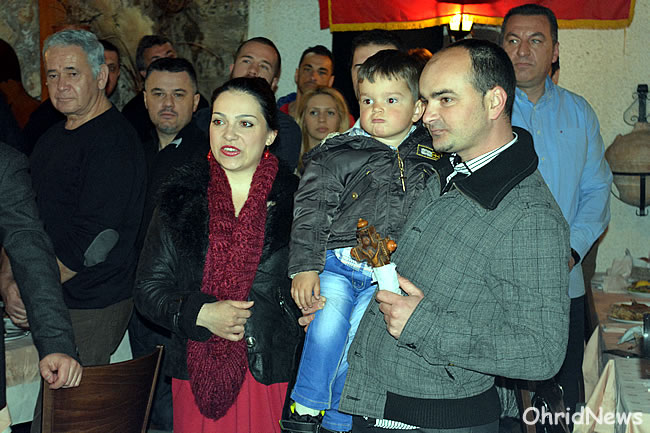 Традиционално фаќачот на крстот придружуван од семејството и својата тајфа дојде во ресторанот Св. Софија, каде беше пречекан од кумовите, градоначалникот на Охрид Никола Бакрачески, членови на здружението Богојавление и свештени лица од Дебарско – кичевската епархија.