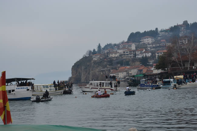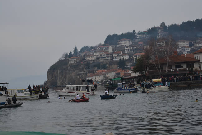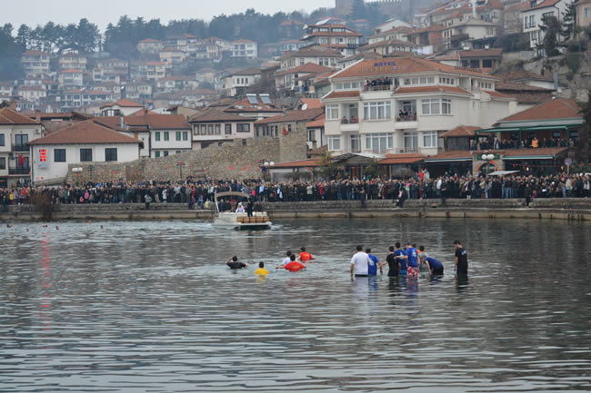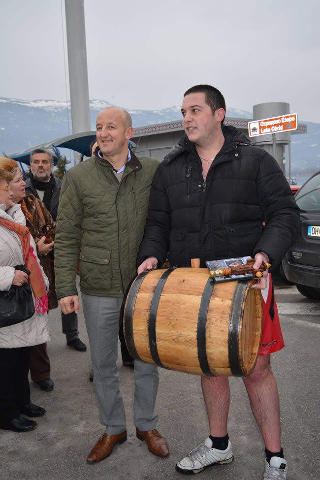 20-годишниот студент од Охрид Климент Довлев, доплива до единственото буре со црвено вино, од вкупно пет што денеска по повод Денот на рибарите на празникот Св. Јоован, беа фрлени во водите на Охридското Езеро кај градското пристаниште.