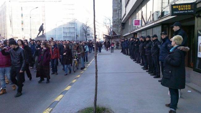 Протестот на незадоволните хонорарци започна во паркот Жена Борец спроти Собранието на Македонија, потоа продолжи пред Министерството за труд, па пред Влада, а предвидено е да да заврши на слободната студентска зона во УКИМ, каде ќе им се даде поддршка на студентите.