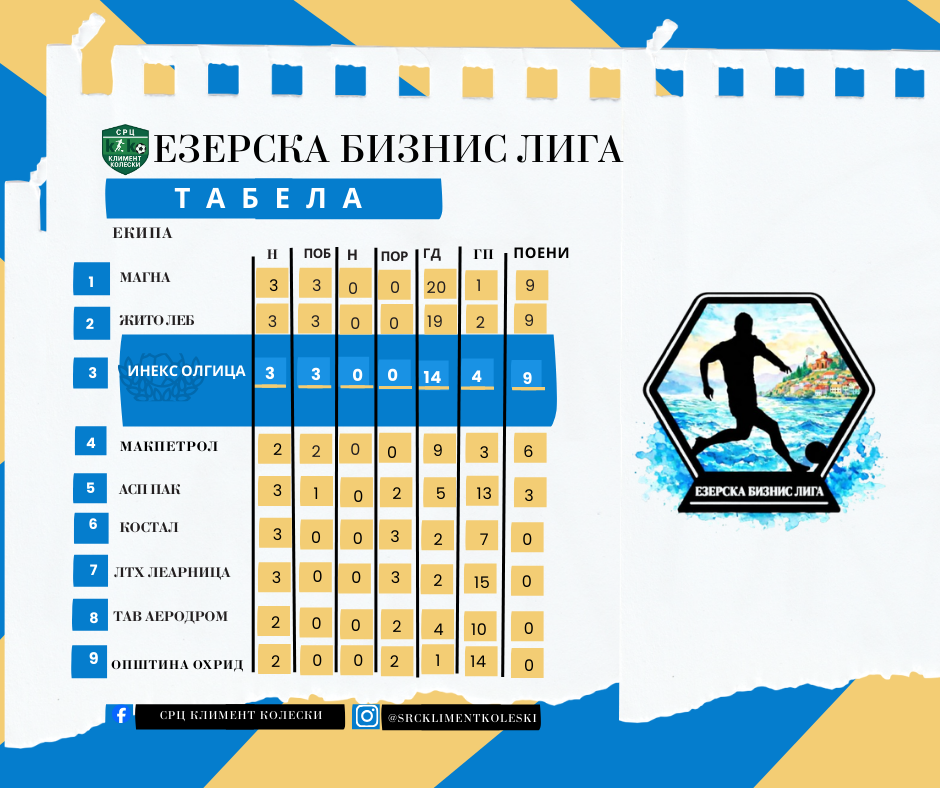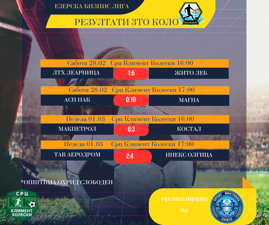Викендов беа одиграни натпреварите од третото коло од фудбалскиот турнир „Езерска бизнис лига“ што се одржува во Спортскиот центар „Климент Колески“ во организација на „Sport Brother Ohrid“.