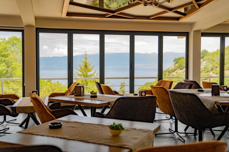 Посебно убава е глетката во вечерните часови на осветлениот охридскиот кеј и градот. Доволна причина да се побегне од градските гужви, да се ужива во вкусна храна од креативната кујна на „Браво“ и да се прими „терапија“ од свеж планински воздух со вечерното ветре кое е привилегија во Велестово.