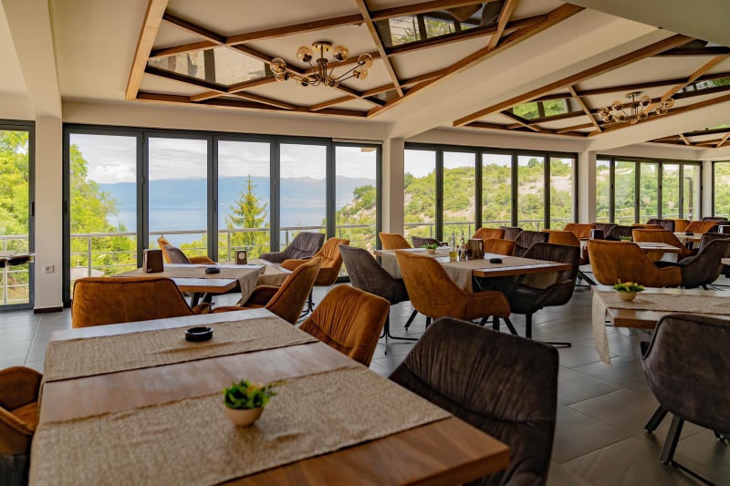 Посебно убава е глетката во вечерните часови на осветлениот охридскиот кеј и градот. Доволна причина да се побегне од градските гужви, да се ужива во вкусна храна од креативната кујна на „Браво“ и да се прими „терапија“ од свеж планински воздух со вечерното ветре кое е привилегија во Велестово.