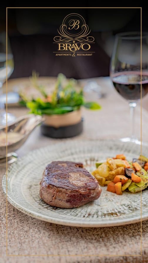 Понудата за доручек, ручек и вечера е исклучителна. Менито на „Браво“, е еклузивното, а сепак достапно за сечиј џеб. Изобилува со пилешки, свински и говедски специјалитети и разни видови печења. Во објектот може да се организираат и прослави, веселби, корпоративни и други организирани настани за околу 200 гости, со почитување на здравствените протоколи.