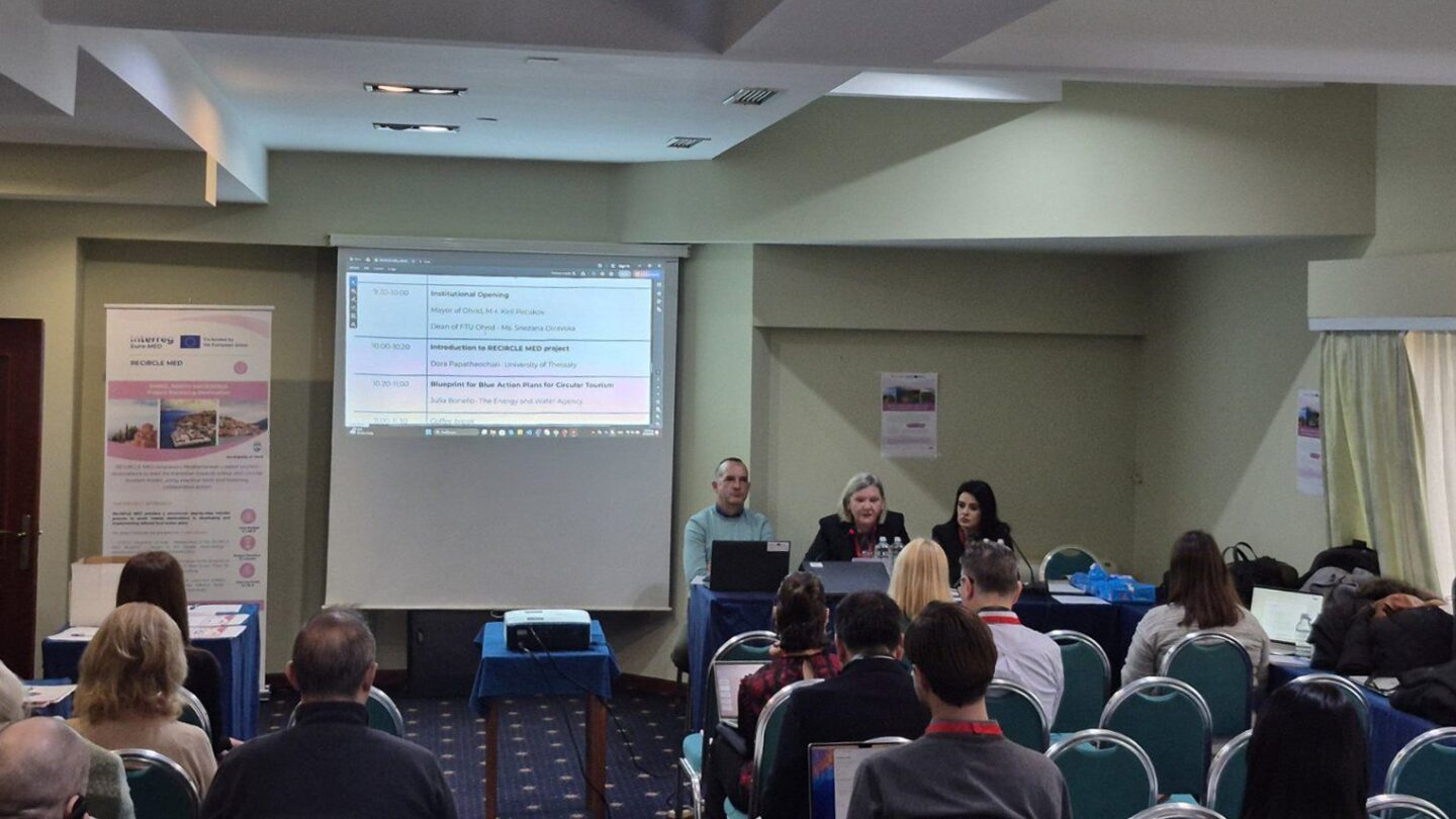 Со ова ги докажуваме нашите силни заложби за туристички развој на градов во склад со модерните барања и очекувања. Охрид е реномирана туристичка дестинација и најпознат балкански туристички бренд, Мека за гости и турсти од цел свет. Познати сме по големото искуство и силна посветеност на одржливиот развој, особено во заштитата на животната средина и управувањето со туризмот. Овие деновиве ќе расправате за важноста и значењетона RECIRCLE MED Blueprint проектот кој општина Охрид го имплементираше и преку кој работно се ангажираа неколку лица. Преку презентации и ко-креативни сесии ќе прибирате информации и идеи кои директно ќе го обликуваат Синиот акциски план на Охрид за развој на кружен туризам. Преку дискусии на регионално ниво, со анализа на заедничките приоритети и потенцијалот за меѓусебна соработка меѓу земјите од Западен Балкан ќе реализирате две тематски панел-дискусии: „Предизвици и бариери на Западен Балкан кон син и кружен туризам“ и „Можности за заеднички иницијативи и потенцијални финансирања.