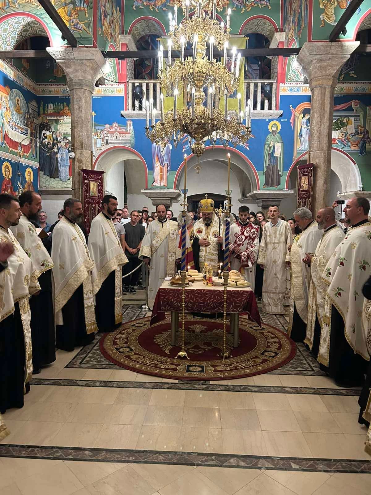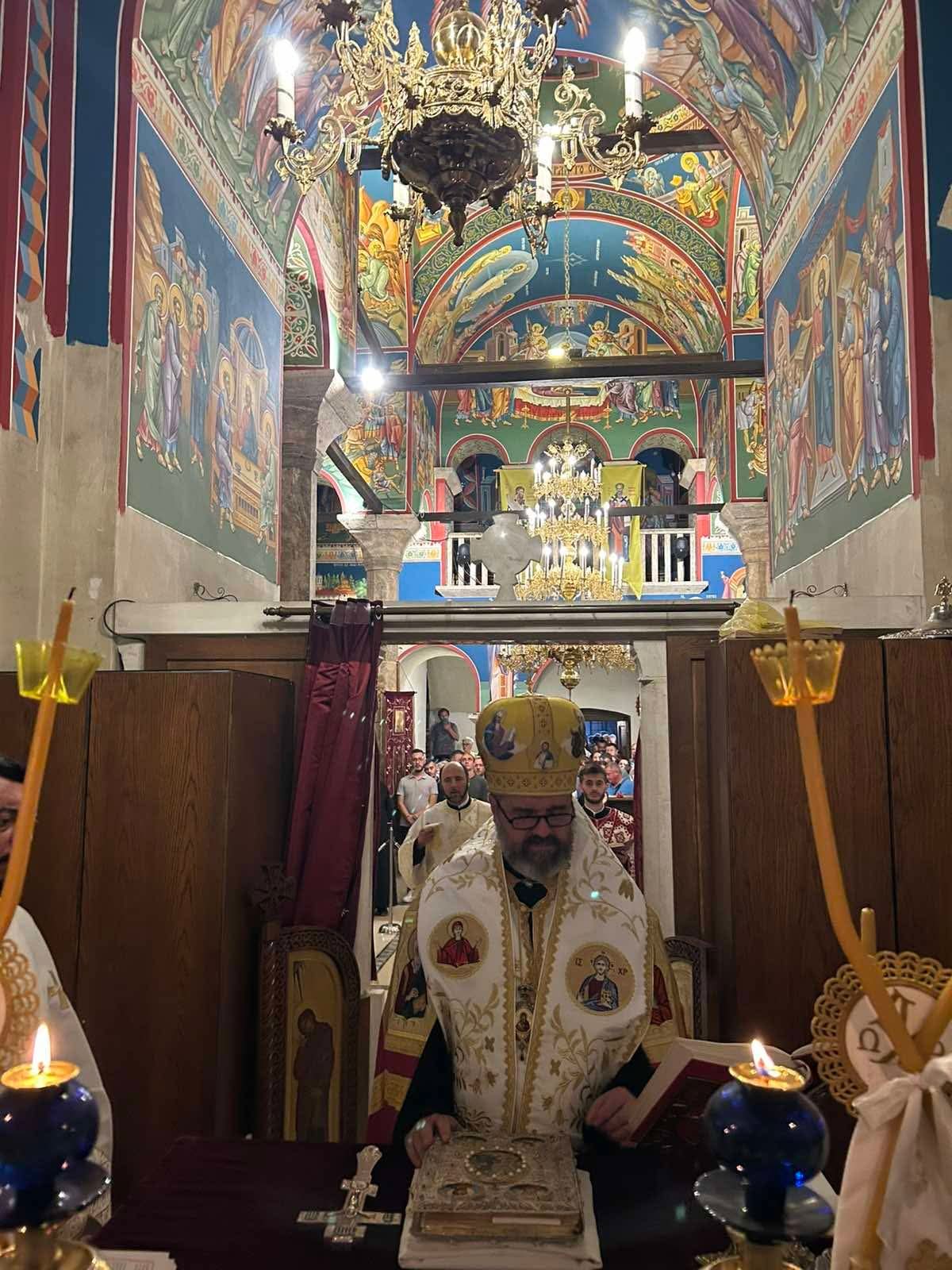 На празничната вечерната богослужба чиноначалствуваше Неговото Високопреосвештенство Митрополит Дебарско-кичевски Георгиј.