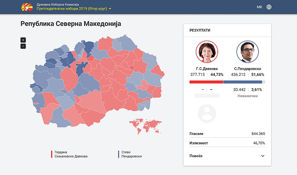 Сепак, севкупно, на претседателските избори победи Пендаровски, кој освои 51,66% од гласовите.