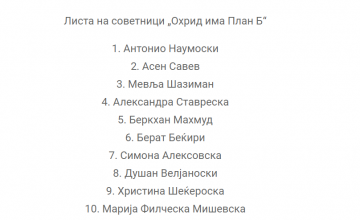 Објавена Независната листа на советници „Охрид има План Б“ за престојните локални избори во Охрид. Носител на листата е Антонио Наумоски.