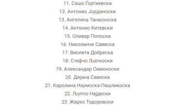 По него следат: Асен Савев, Мевља Шазиман, Александра Ставреска, Беркхан Махмуд, Берат Беќири, Симона Алексовска, Душан Велјаноски, Христина Шеќероска, Марија Филческа Мишевска, Сашо Ѓорѓиевски, Антонио Јорданоски, Ангелина Танаскоска, Антонио Китевски, Оливер Попоски, Николинче Савеска, Виолета Добреска, Стефчо Љаткоски, Александар Симоноски, Дијана Савеска, Каролина Наумоска- Пешликоска, Љупчо Најдески, Жарко Тодоровски.