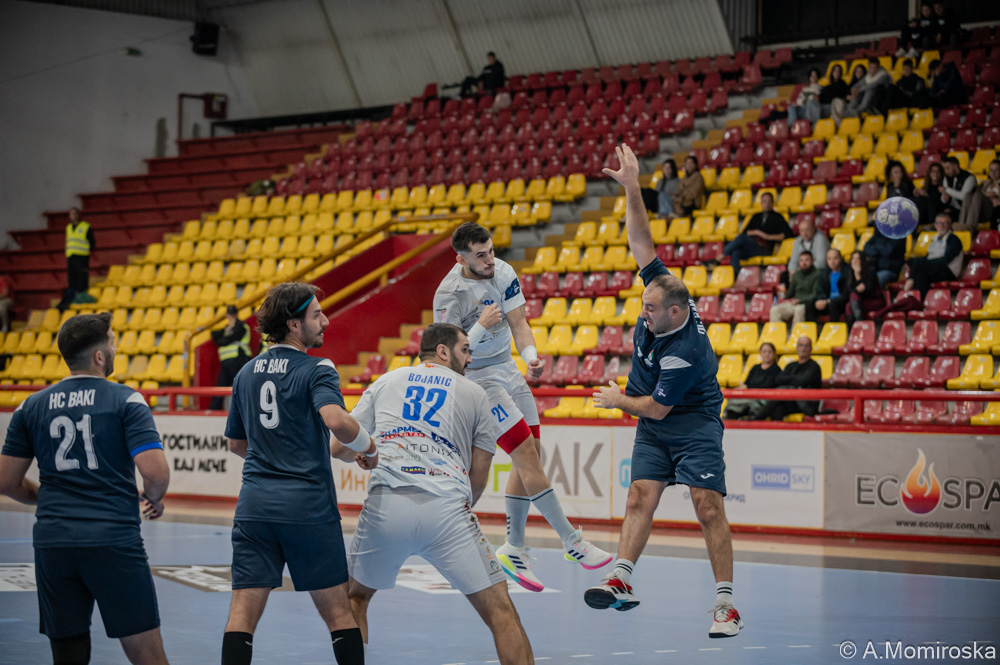 Ракометарите на Охрид ја оправдаа фаворитската улога и во реванш натпреварот со азербејџанскиот претставник Баки што се одигра во рамки на второто коло од ЕХФ Европскиот Куп. Вечерва во салата „Билјанини извори“, Охрид забележа уште една убедлива победа, овој пат 38:21.