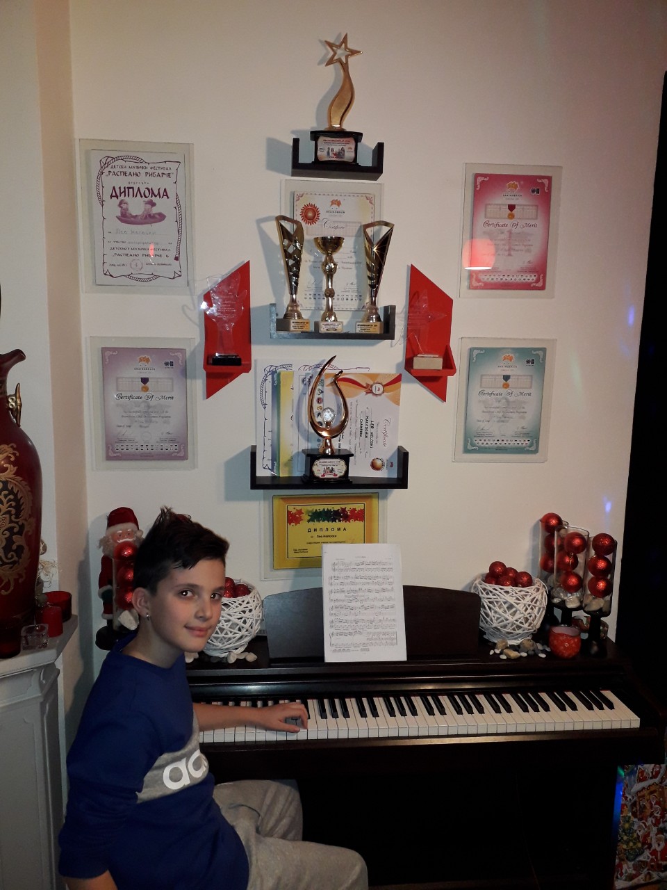 Во меѓувреме тој се подготвува за натпреварите по природни науки и пијано. Музиката му е голема љубов, наследена од неговиот татко Симе, инаку познат охридски хармоникаш.