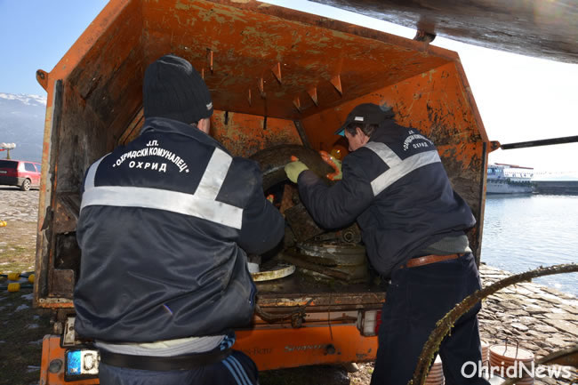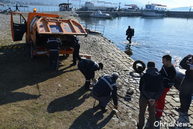 Од езерското дно подигната е поголема количина отпад кој со возила на ЈП „Охридски Комуналец“ е одложен на депонија.