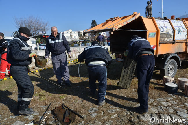 Членовите на нуркачкиот центар „Амфора“ и клубот за подводни активности „Охрид“, денеска, го исчистија просторот кај градското пристаниште каде на празникот Водици ќе се фрла светиот крст.