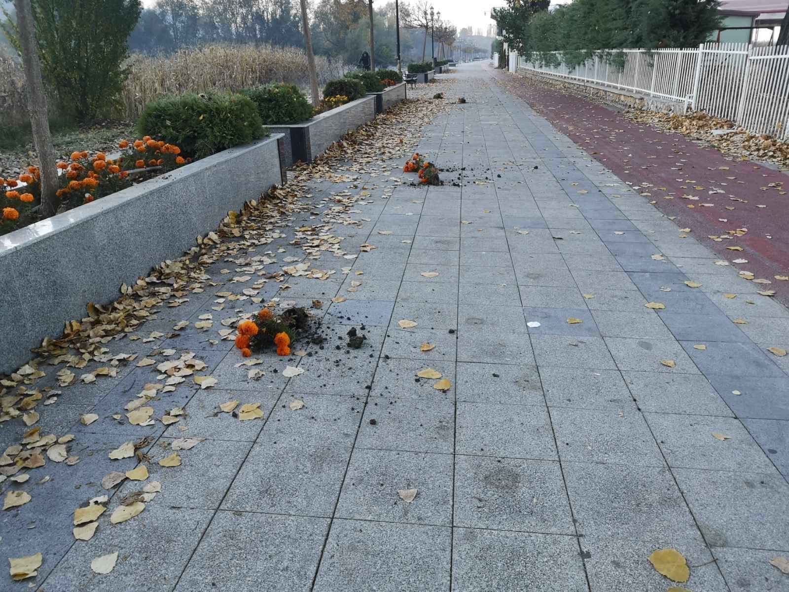 Како што може да се забележи садниците од цвеќиња се откорнати и фрлени на патеката.