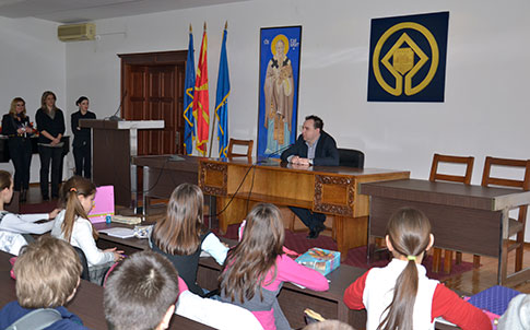 Секретарот на општината Димитар Спасески во улога на домаќин, ги запозна младите охриѓанчиња со начинот на функционирањето на Локалната самоуправа. Децата во улога на градоначалник, претседател на совет, секретар и градски советници, во големата сала учествуваа на импровизирана седница на совет , а секретарот Спасески одговараше на нивните прашања.