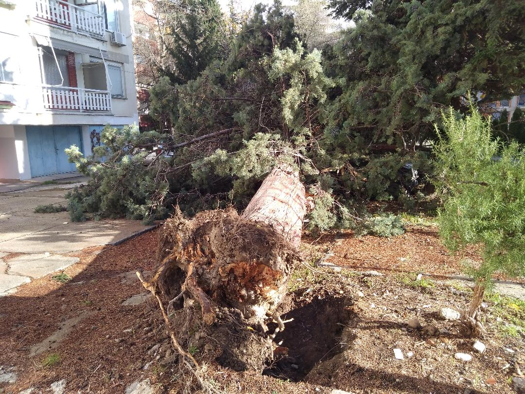 Десетметарски бор откорна невремето на улицата „Сатеска“ во Даљан и падна на паркирано возило. Жителите од населбата во допис до медиумите реагираат дека борот веќе неколку дена е на земја и покрај нивните барања до надлежните служби истиот да биде отстранет. Дрвото велат се наоѓа на државно земјиште, а паднато е на пешачка зона по која се движат станари на зграда со три влеза и за среќа, нема човечки жртви.