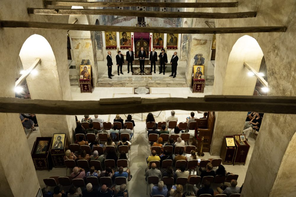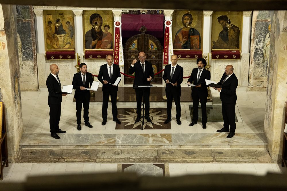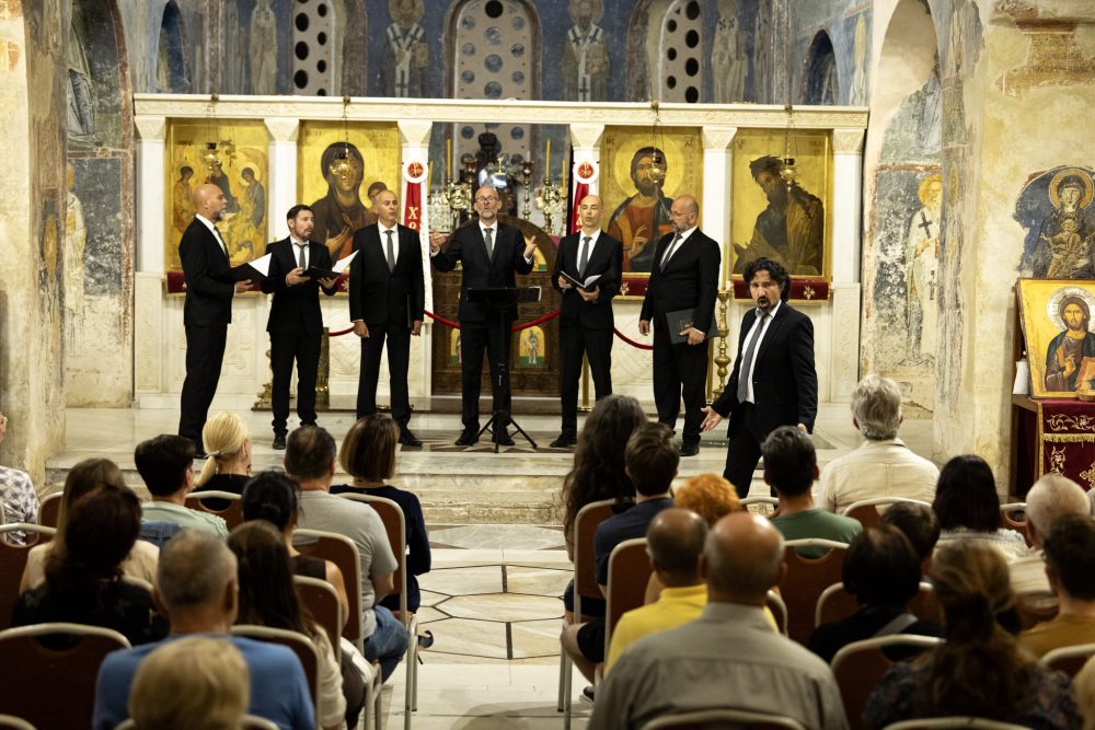 Кристалната чистота што прозвучи од седумте грла на овој вокален ансамбл, совршено се вклопи во акустичниот сакрален амбиент на „Света Софија“. Програмската лепеза содржеше седумнаесет нумери, руски и српски, световни и духовни, далматински, а изненадување за слушателите кои ги наградија членовите на хорот со долги и бурни ракоплескања беше и изведбата на македонската народна песна „На Струга дуќан да имам“.