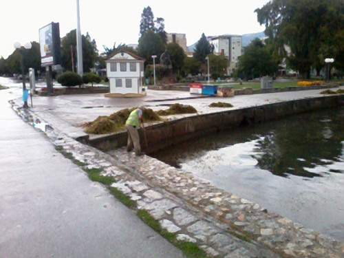 Екипите на ЈП „Охридски комуналец“ од раните утрински часови го расчистуваа кејот на потегот од градското пристаниште до хотел Палас. При тоа, рачно и со помош на специјално возило-фекалка беа подигнати над 50 метри кубни отпад.