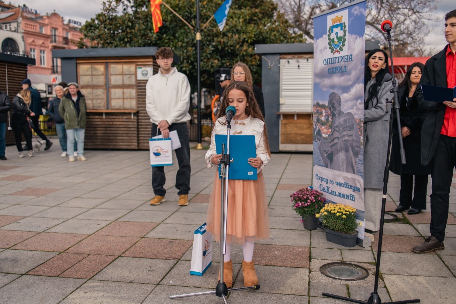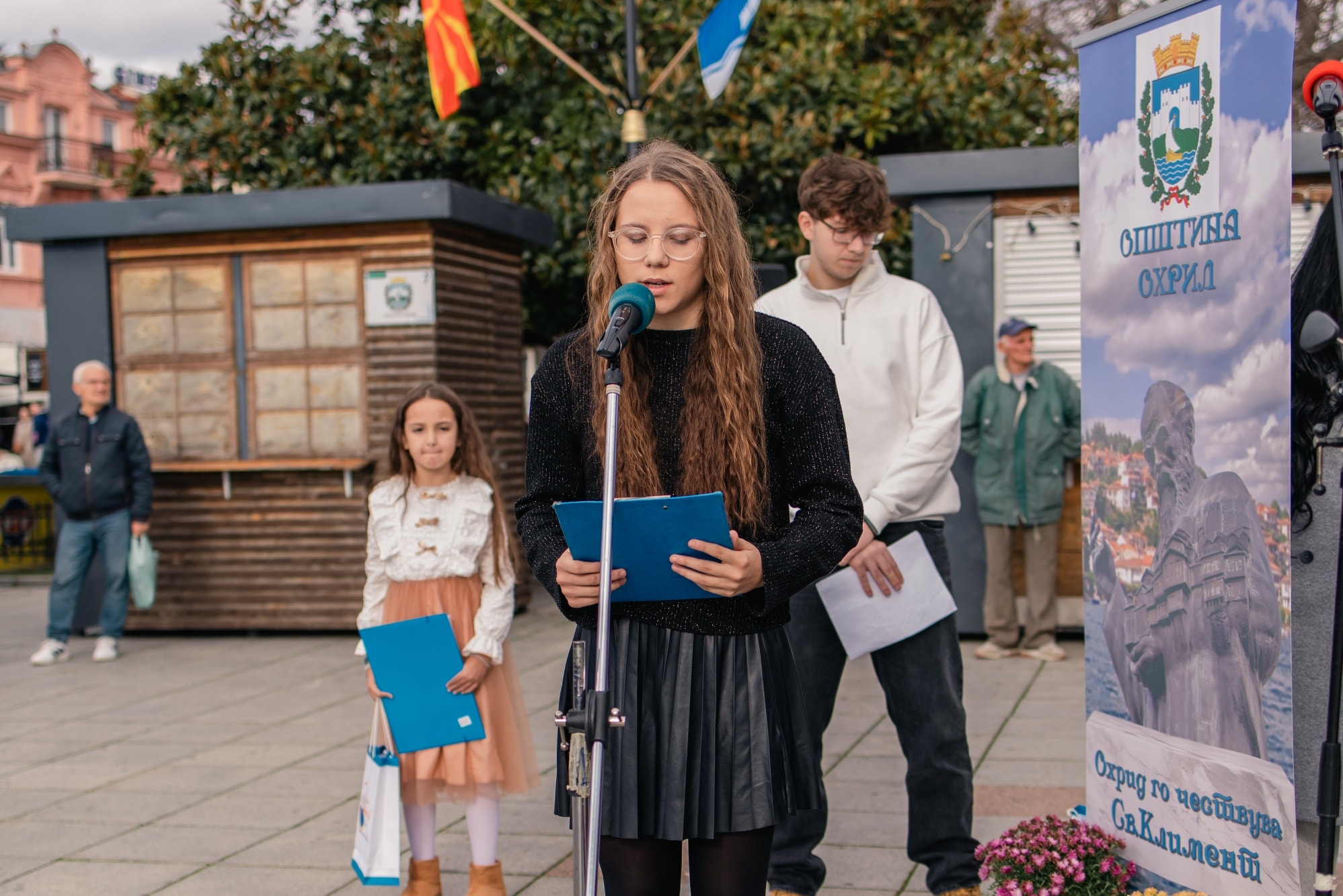 На пригодна свеченост што се одржа на плоштадот „Св. Климент Охридски“, беа доделени наградите на ученици, млади автори кои со својот талент, креативност и љубов кон пишаниот збор се издвоија со најдобрите литературни творби на конкурсот посветен на патронот на градот.