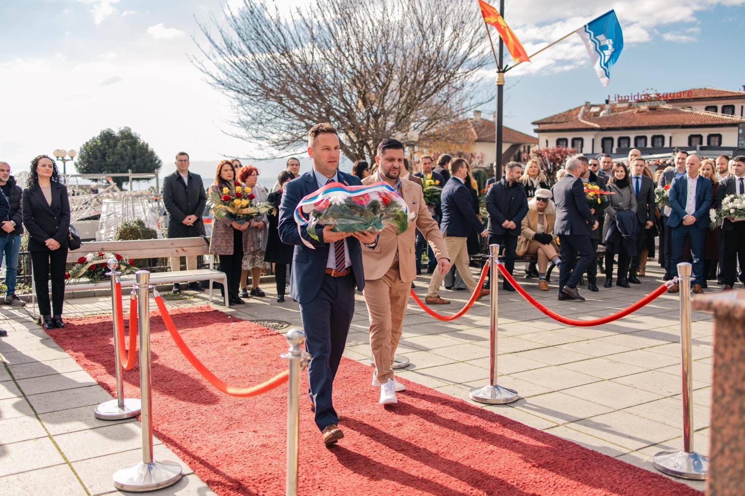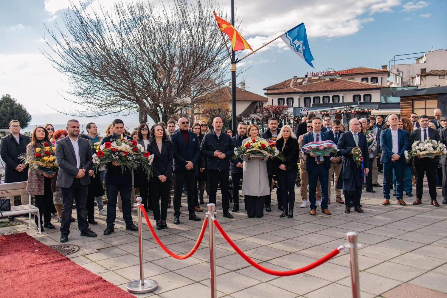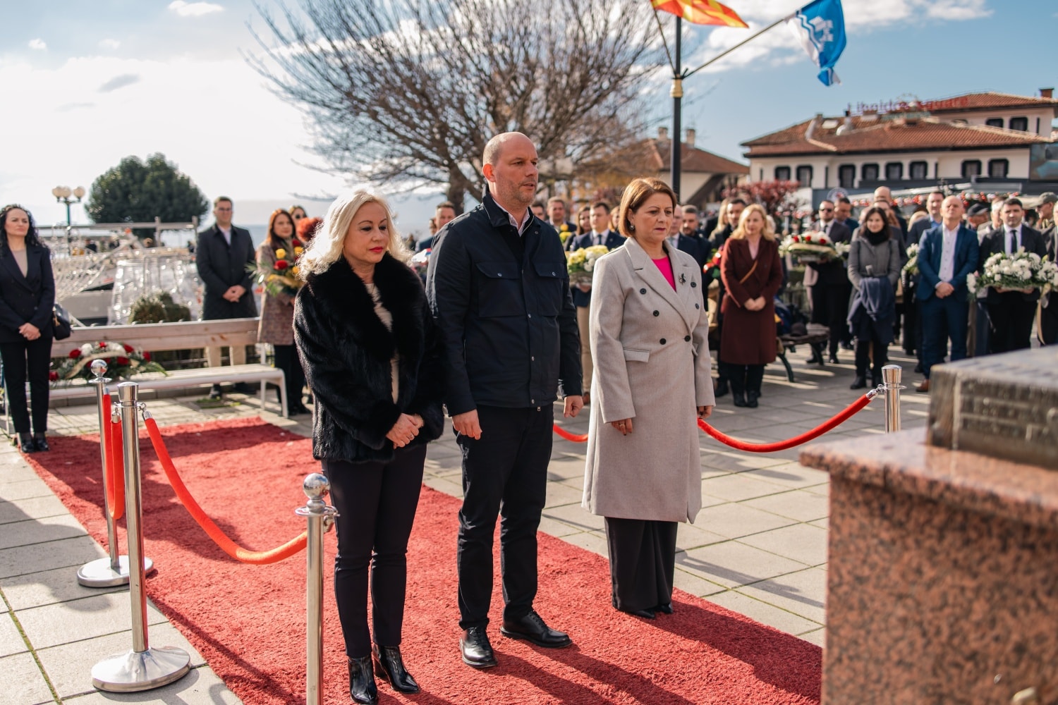 Претходно бројни делегации, официјални лица и гости положија цвбеќе пред споменикот на заштитникот на Охрид.