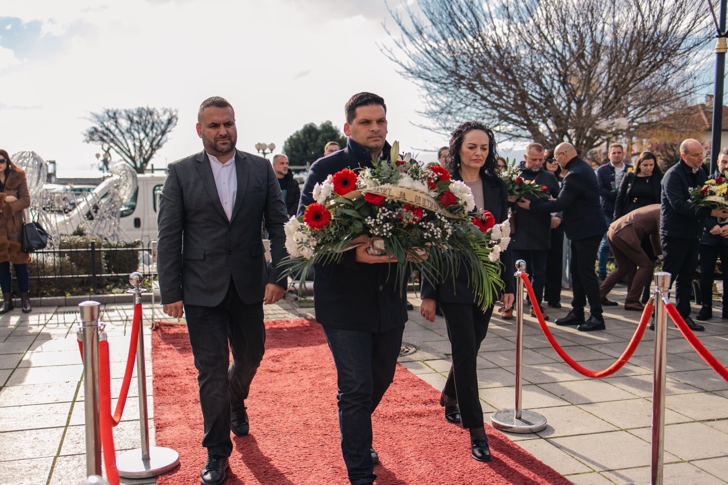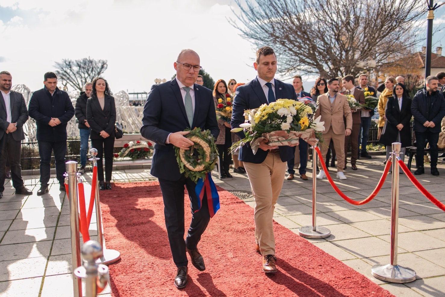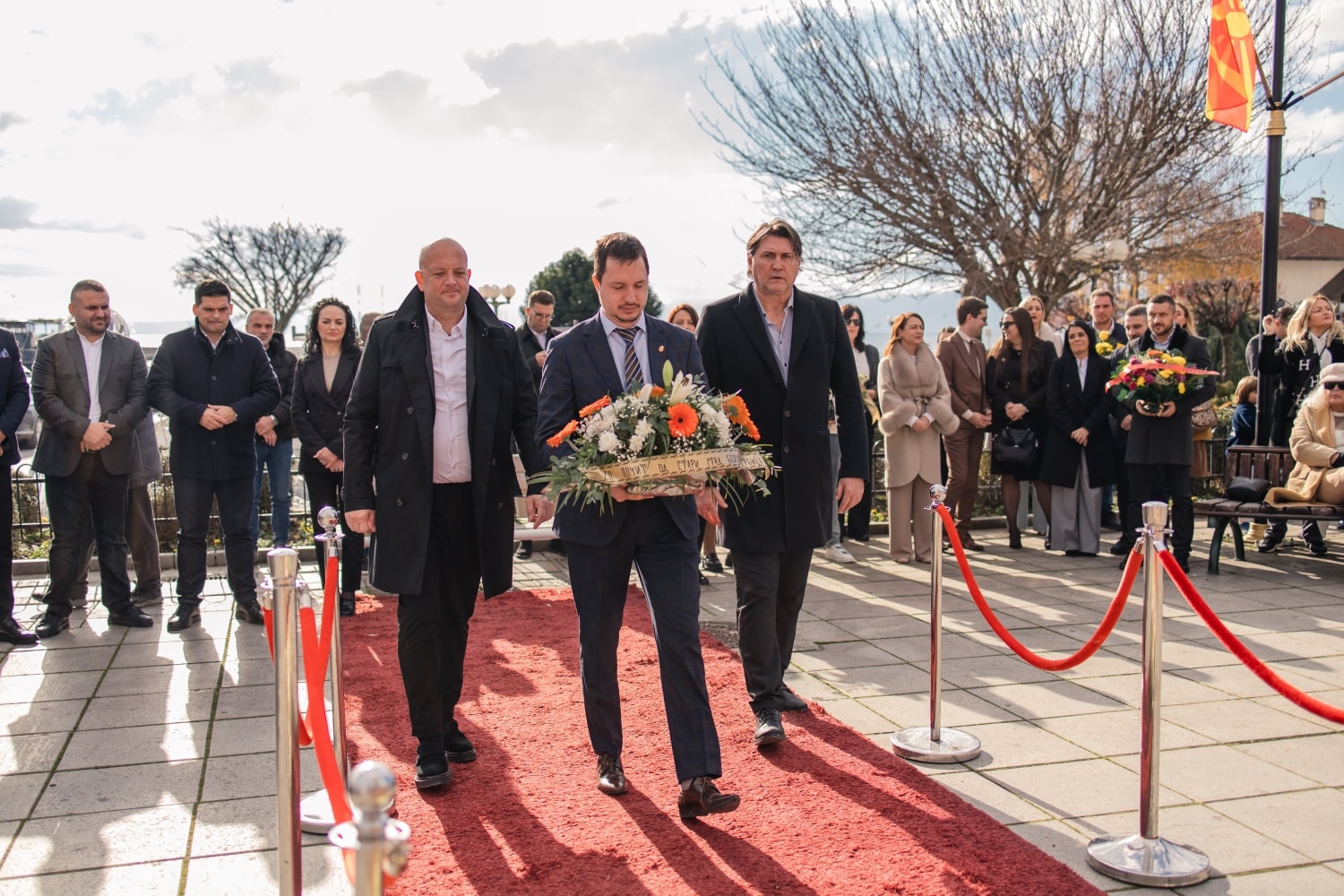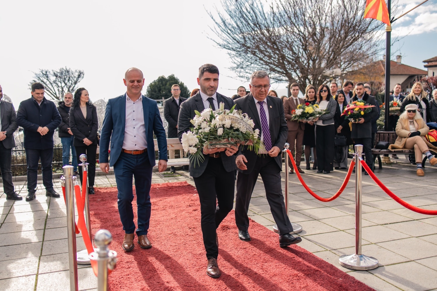 Претходно бројни делегации, официјални лица и гости положија цвбеќе пред споменикот на заштитникот на Охрид.