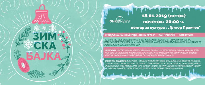 Потсетуваме дека ноевиот термин на одржување на „Зимска бајка“ е 18 јануари 2019 година во центарот за култура „Григор Прличев“ со почеток во 20 часот.