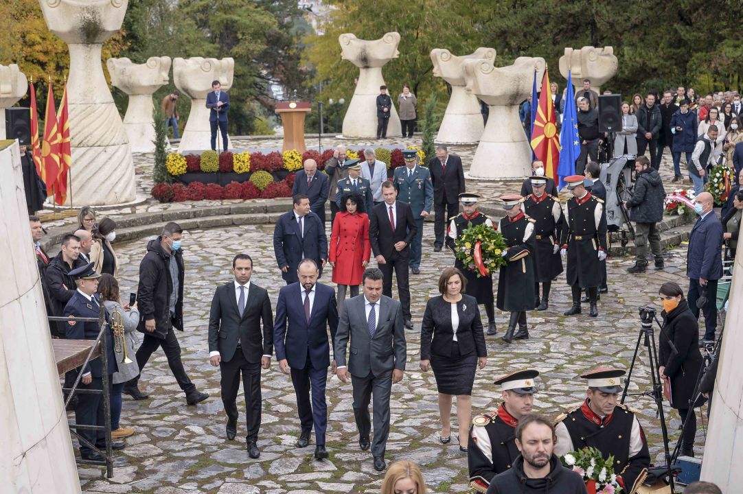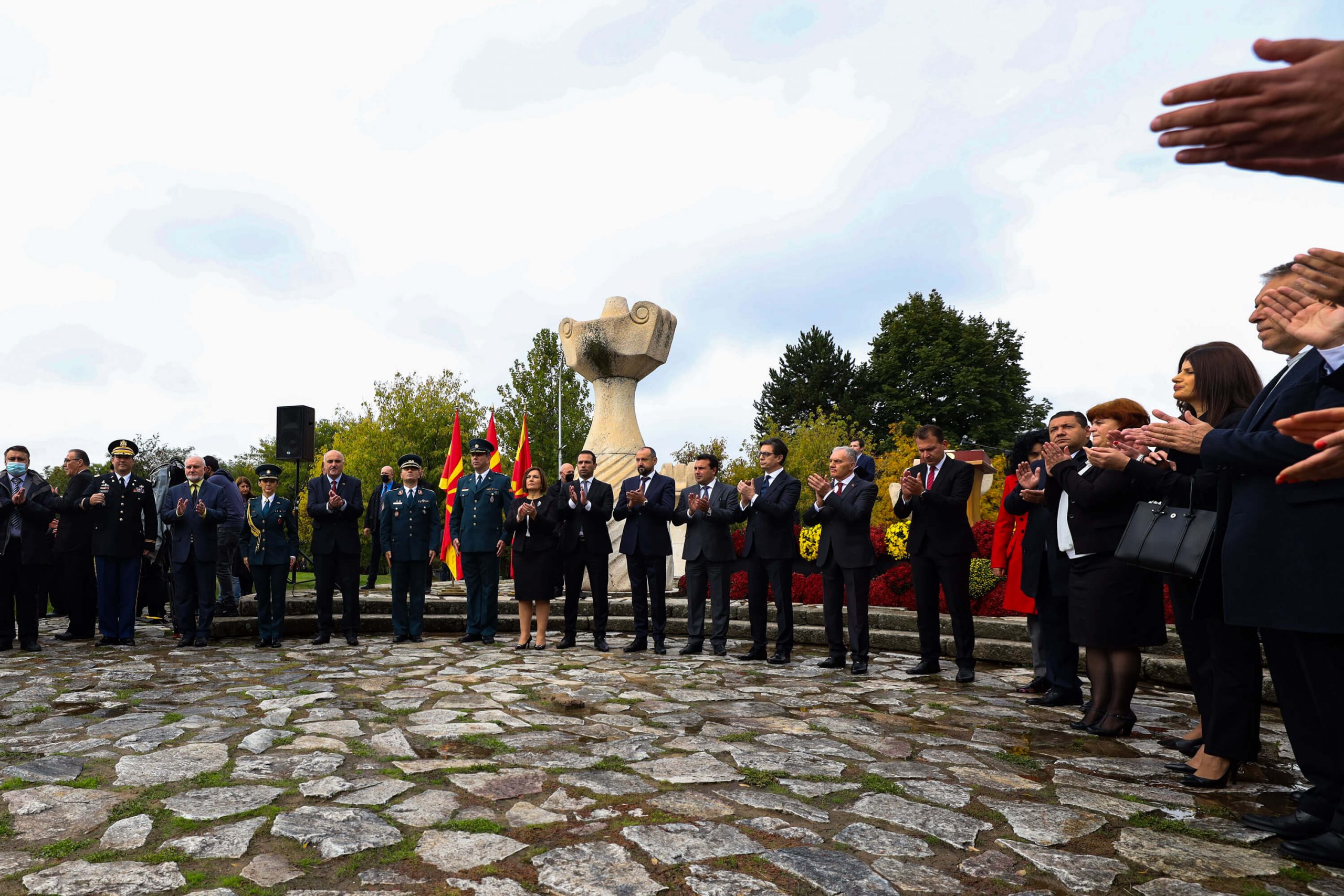 Пред нас е задачата да ги чуваме слободата и демократските вредности, и посветено и одговорно да придонесуваме за соживотот. Република Северна Македонија мора да продолжи да вложува напори да биде дел од прогресивниот свет, притоа, водејќи сметка за достоинството и на граѓаните и на државата. Преку граѓанско и национално помирување, преку владеење на правото и подигнување на квалитетот на животот, да ја вратиме надежта кај младите дека можат да се остварат тука, во својата татковина. И со тоа да целиме кон праведно и слободно општество на еднакви, за какво што сонуваа нашите славни херои во чија чест сме денес сите ние овде собрани, додаде Пендаровски.