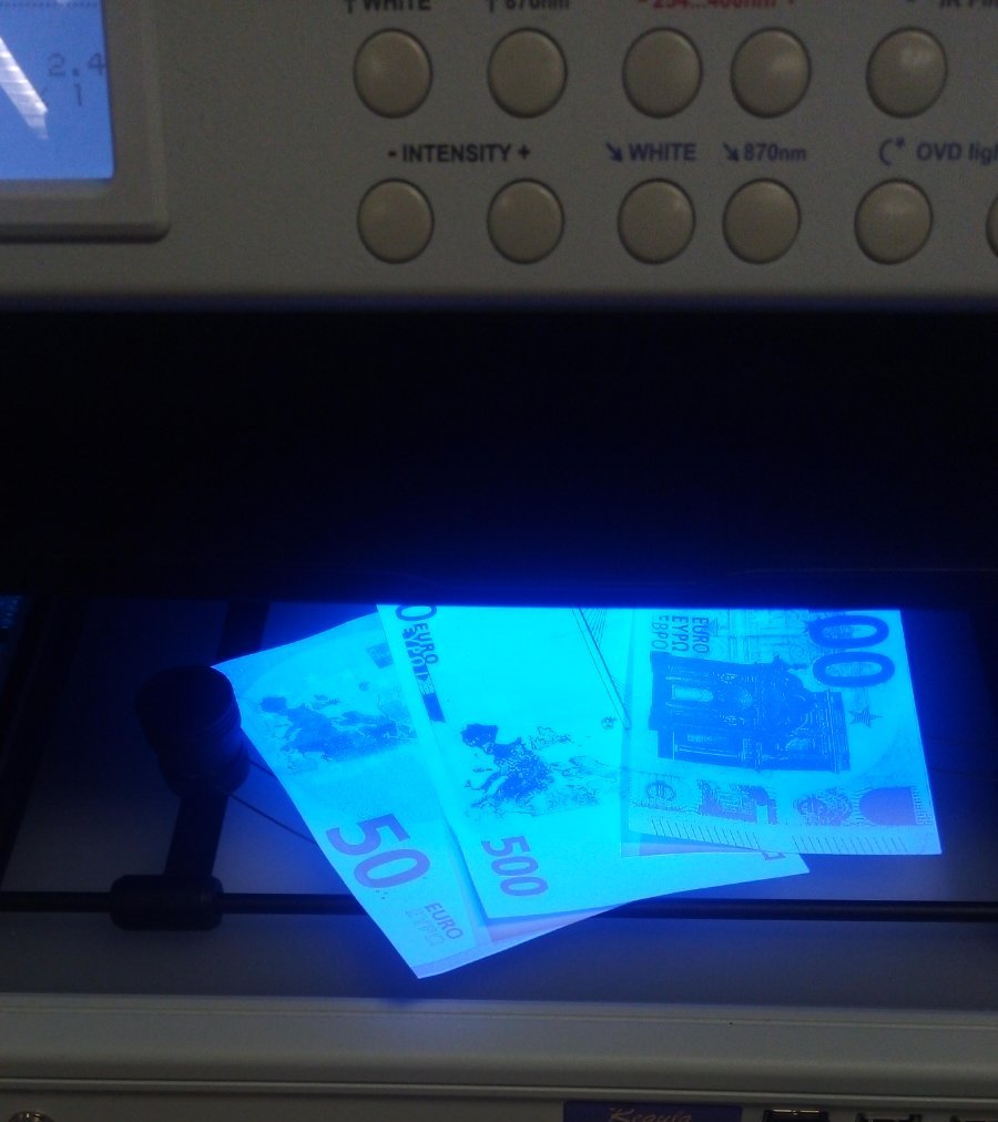 При пасошка контрола на пријавените, кои допатувале од Милано, извршена им била дополнителна гранична контрола и при преглед на багажот, кај Т.Р.Ф. биле пронајдени 2.591 исечени парчиња хартија на кои од двете страни е отпечатен дел од дизајнот на банкноти од 50 евра, 2.363 такви парчиња со отпечатен дел од дизајнот на банкноти од 100 евра, 463 парчиња со дел од дизајнот на банкноти од 200 евра, 213 со дизајн на банкноти од 500 евра, 2 исечени парчиња хартија на кои од едната страна е отпечатен во повеќе бои дел од дизајнот на банкноти од 50 евра, 78 исечени парчиња хартија без никаква ознака, како и две шишиња со течност и УВ-ламба. – информира МВР.