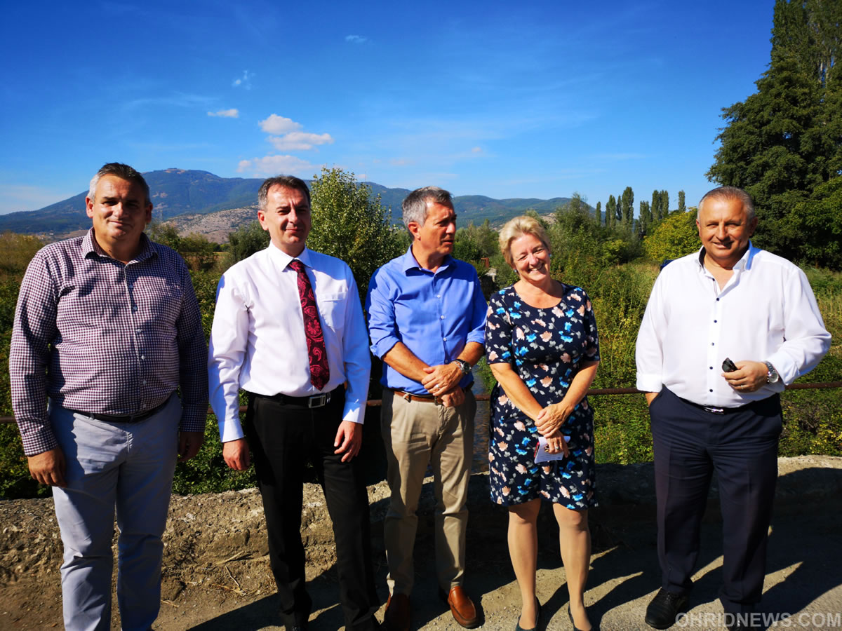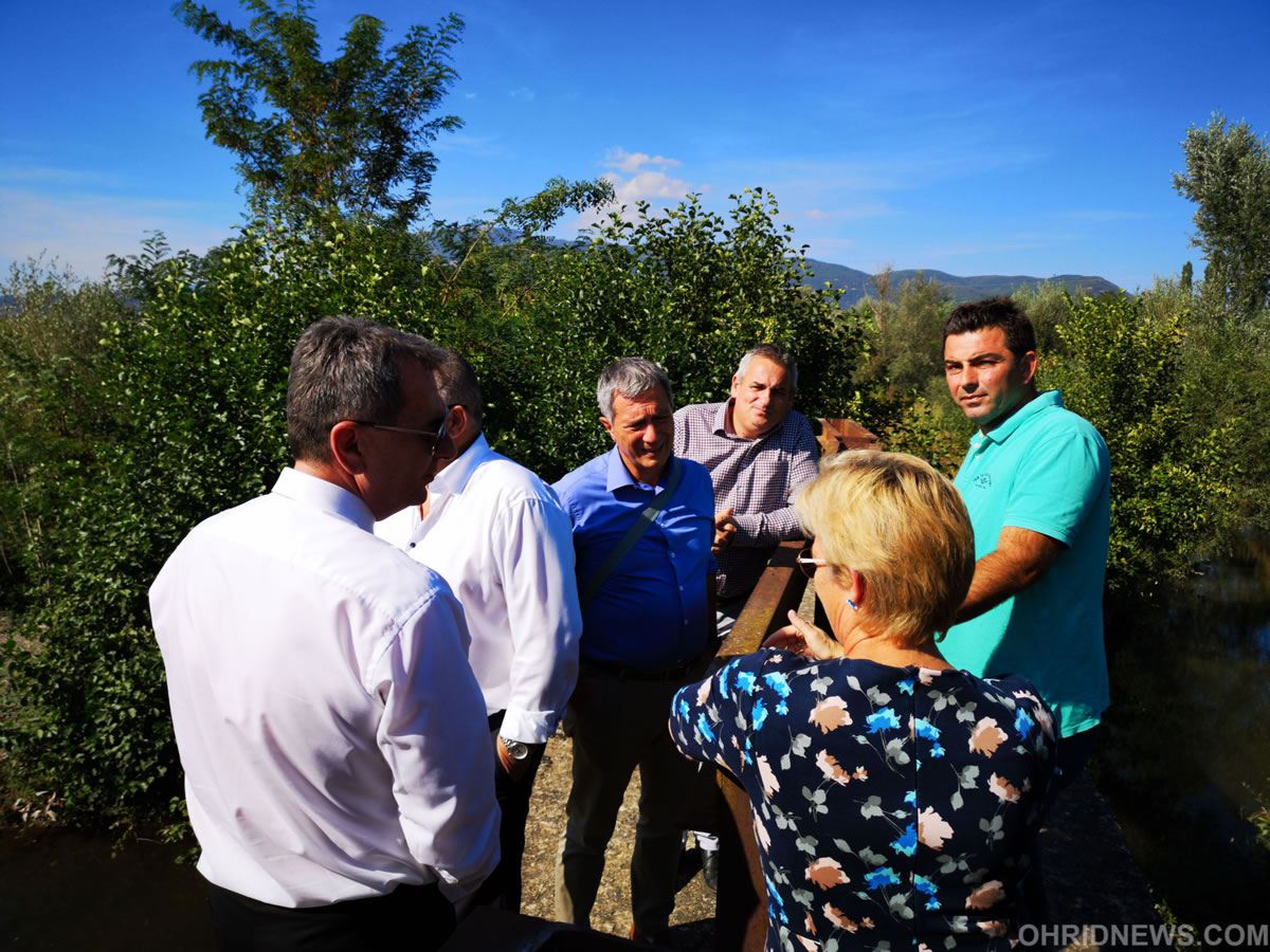 Претставникот на УНДП Луиза Витон во придружба на раководителот на секторот за соработка при Делегацијата на ЕУ Никола Бертолини и градоначалниците на Охрид. Струга и Дебрца, Стојаноски, Мерко и Ногачески, денеска беа во обиколка на реката Сатеска во селото Волино каде се врши пренасочување на водата од старото во новото корито.
