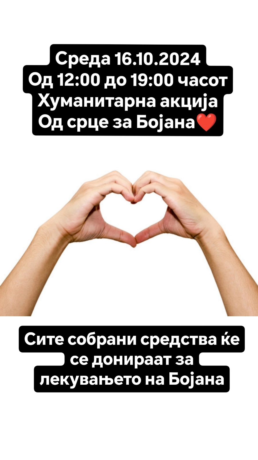 По бројните хуманитарни акции и концерти изминатиот викенд убав гест подготвува и фризерското студио „Elit Mari“. Имено оваа среда, 16 октомври, целиот промет од услугите фенирање и третмани на коса, како и од продажбата на производи за разубавување, ќе одат за поддршка на Бојана. Хуманата акција е поддржана од „Silk solution“, „Аlfaparf“ – Македонија и „Макси ексклузив“.
