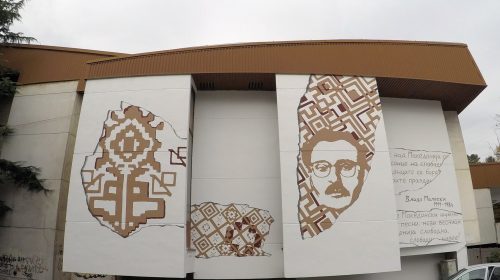 Мурал посветен на Владо Малески насликан на јужната фасада на…Mурал посветен на дејноста на истакнатиот писател и општествено- по...