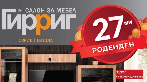 „Гирриг“ слави 27 години со бројни попусти и изненадувања за…Етаблираниот салон за мебел „Гирриг“ го прославува 27-от роденден И...