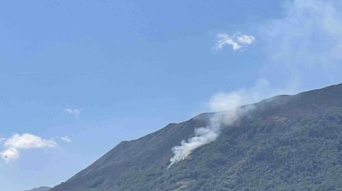 Кај Зли дол на Галичица горат трупци кои тлееле од…Кај Зли дол на Галичица горат трупци кои тлееле од претходниот голе...