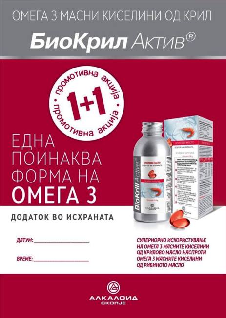 На денот на промоцијата, за секое купено пакување на Биокрил Актив добивате едно ГРАТИС.