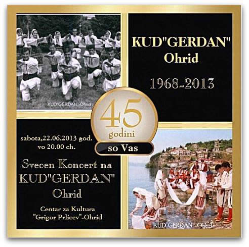 По повод 45-годишнината од постоењето на КУД „Ѓердан“, денеска ќе биде промовирана јубилејна монографија за најстарото културно уметничко друштво во Охрид.