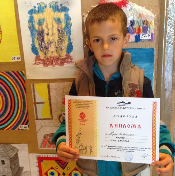 Првооделенецот Ѓорѓи Петкоски кој е ученик во О.У. „Кочо Рацин“ од Охрид освоил Прва награда за ликовната творба „Стомна“ во рамки на 41. Државна изложба на детски ликовни творби на тема „Народната култура како трајна инспирација во моето творештво“ која се одржала вчера во Центарот за култура во Битола.