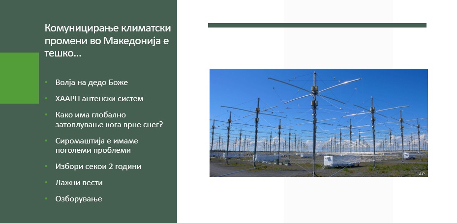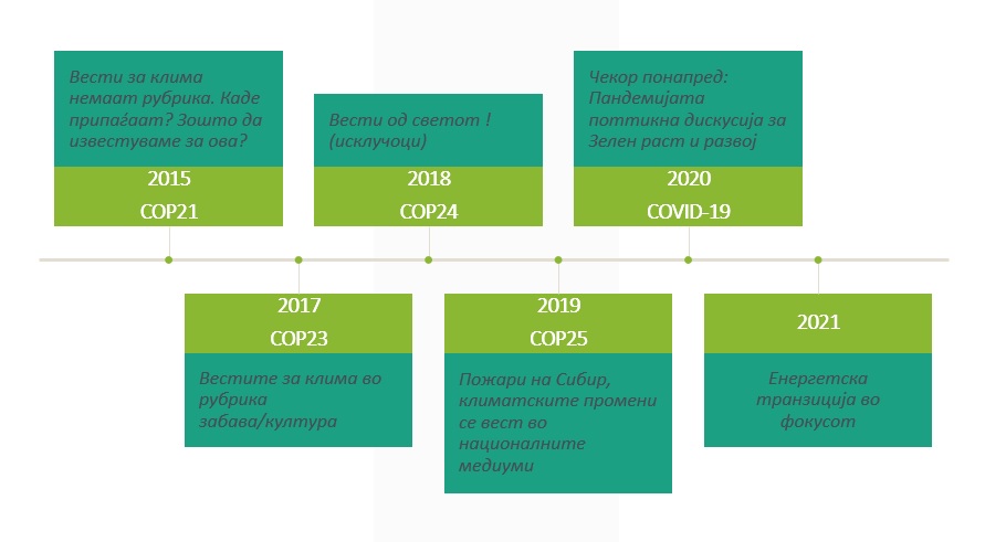 -Кога се обидував да ги информирам медиумите пред некоја година и да протнам вести за клима, се случуваше да нема соодветна рубрика за тоа или имаше коментари од типот зошто воопшто да пишуваме за оваа проблематика. Во 2017 работите малку се подобрија. Тогаш добивме простор за вестите во клима, па ги стававме во вестите забава или култура, 2018 стигнавме до вестите од светот. И годинава имаме успех и се прилагодивме. користевме вебинари. Некогаш утринските емисии се најдобар простор. Мора да размислувате како да прикажете визуелно издржани приказни – вели Николовска.